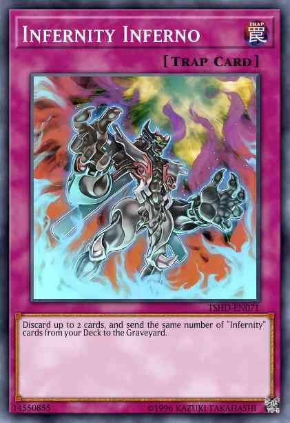 Card Text: Discard up to 2 cards and send the same number of "Infernity" cards from your Deck to the Graveyard.