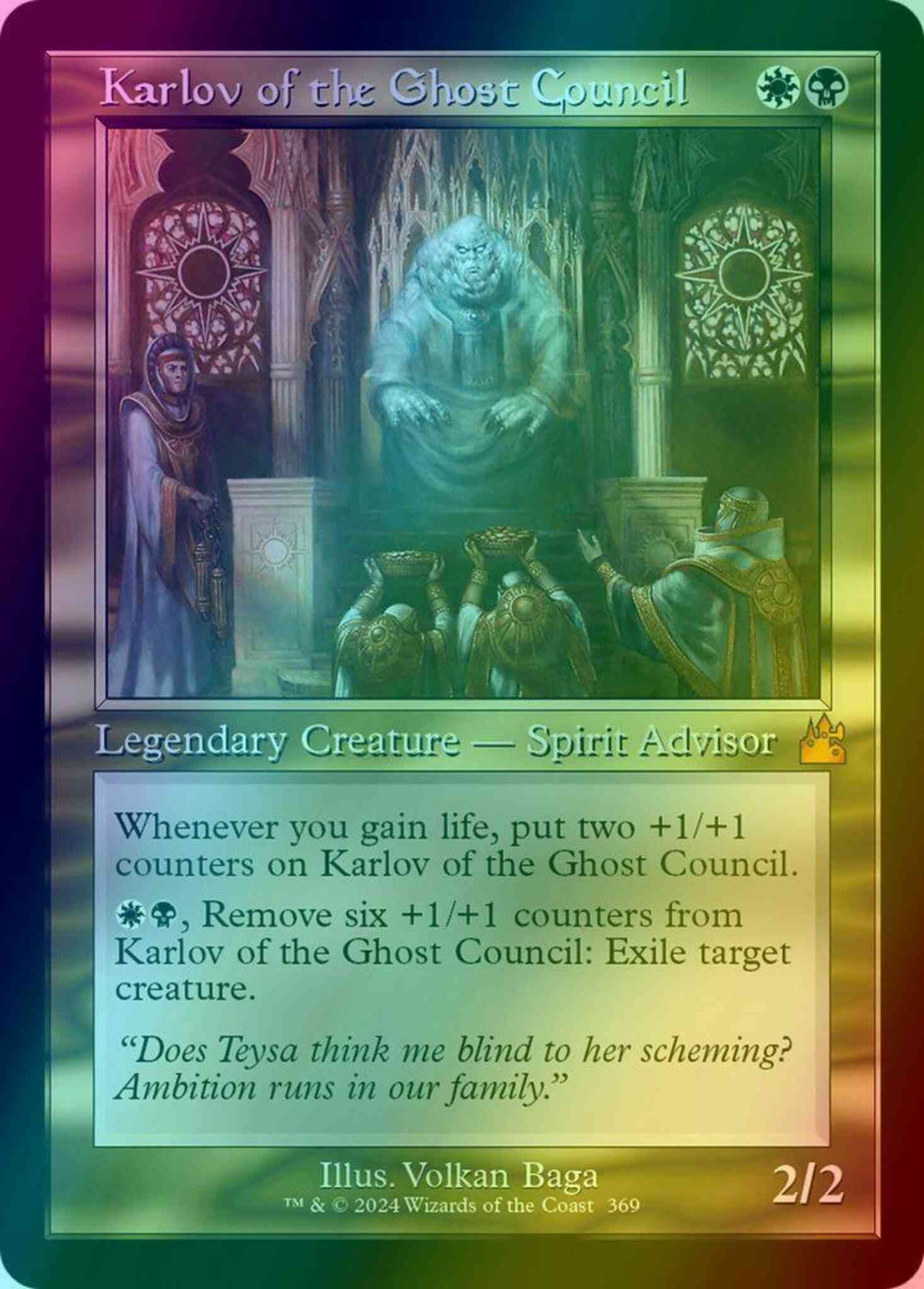 Whenever you gain life, put two +1/+1 counters on Karlov of the Ghost Council.