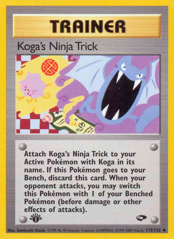 Attach Koga's Ninja Trick to your Active Pokémon with Koga in its name. If this Pokémon goes to your Bench, discard this card. When your opponent attacks, you may switch this Pokémon with 1 of your Benched Pokémon (before damage or other effects of attacks).