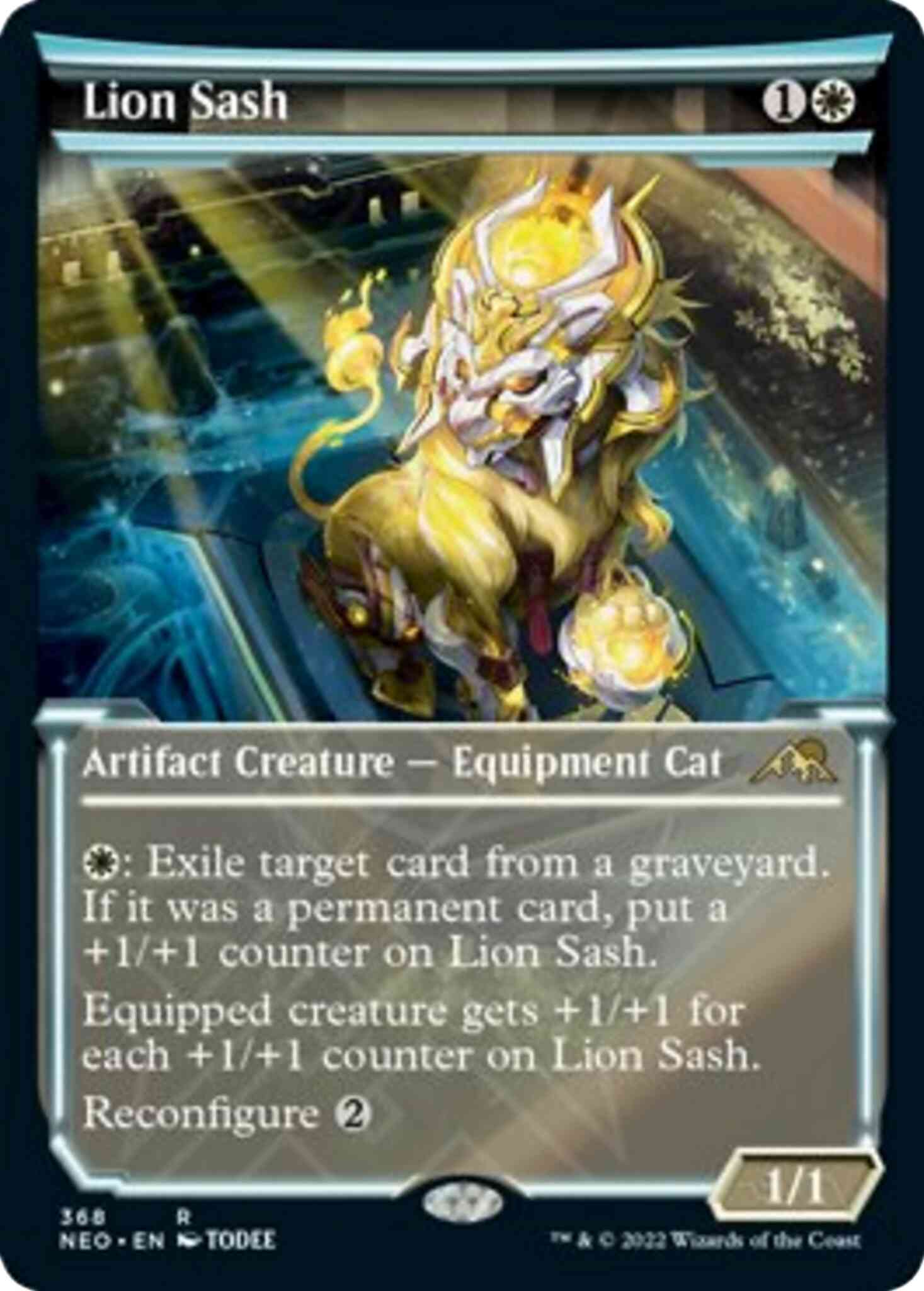 Equipped creature gets +1/+1 for each +1/+1 counter on Lion Sash.