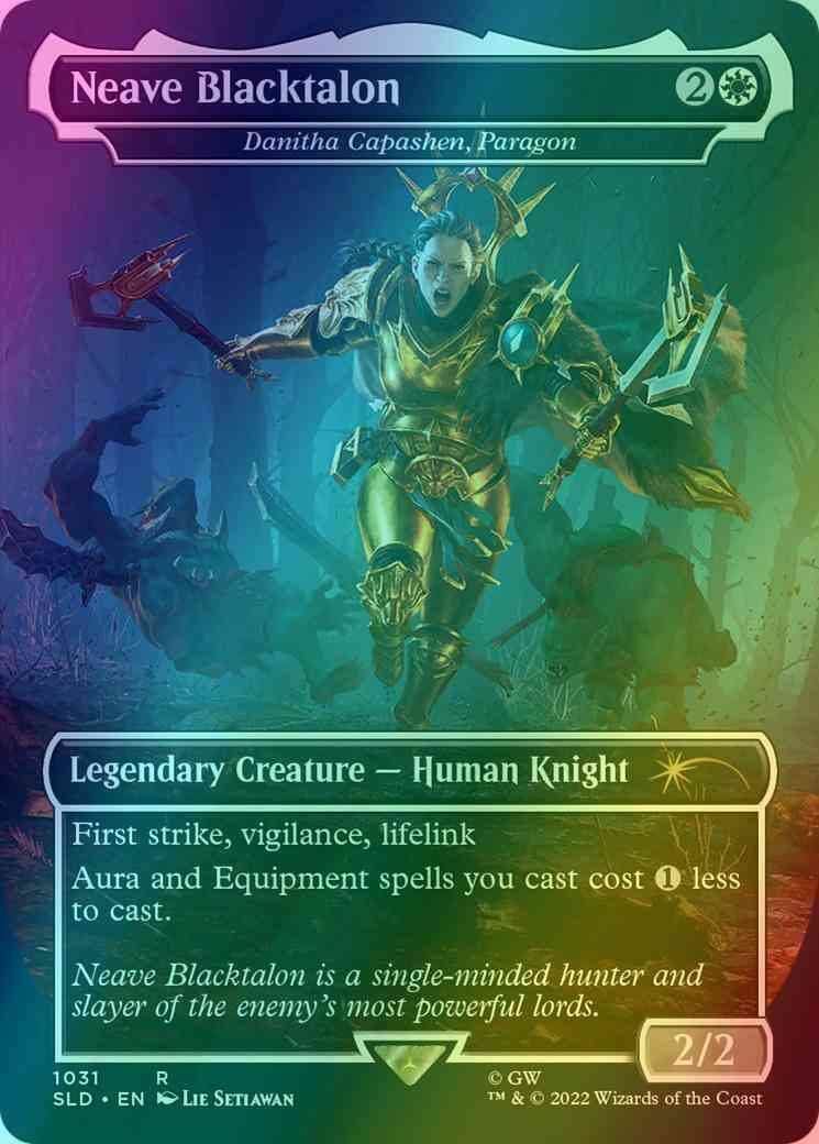 Card Text: First strike, vigilance, lifelink Aura and Equipment spells you cast cost {1} less to cast.