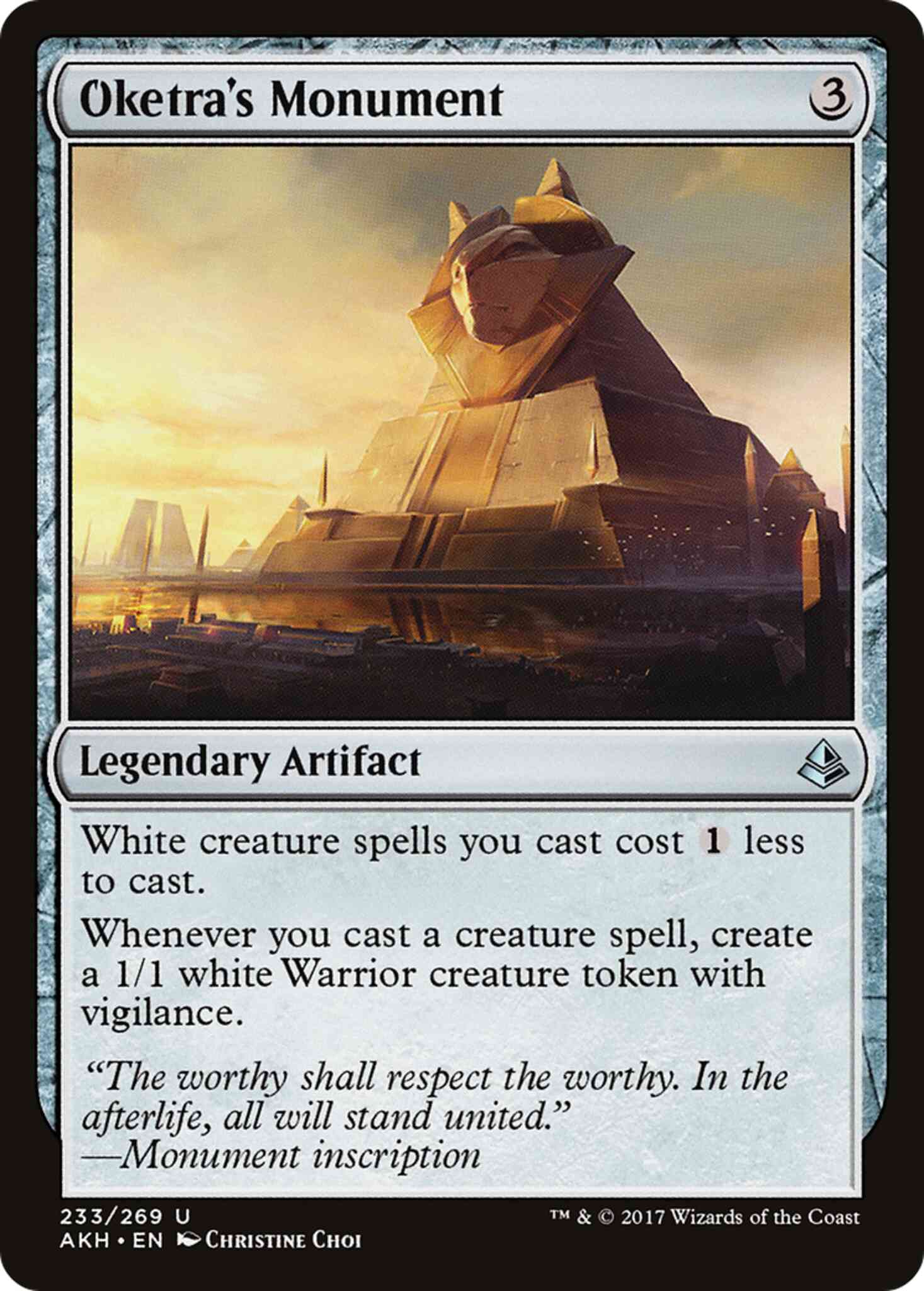 Card Text: White creature spells you cast cost {1} less to cast. Whenever you cast a creature spell, create a 1/1 white Warrior creature token with vigilance.