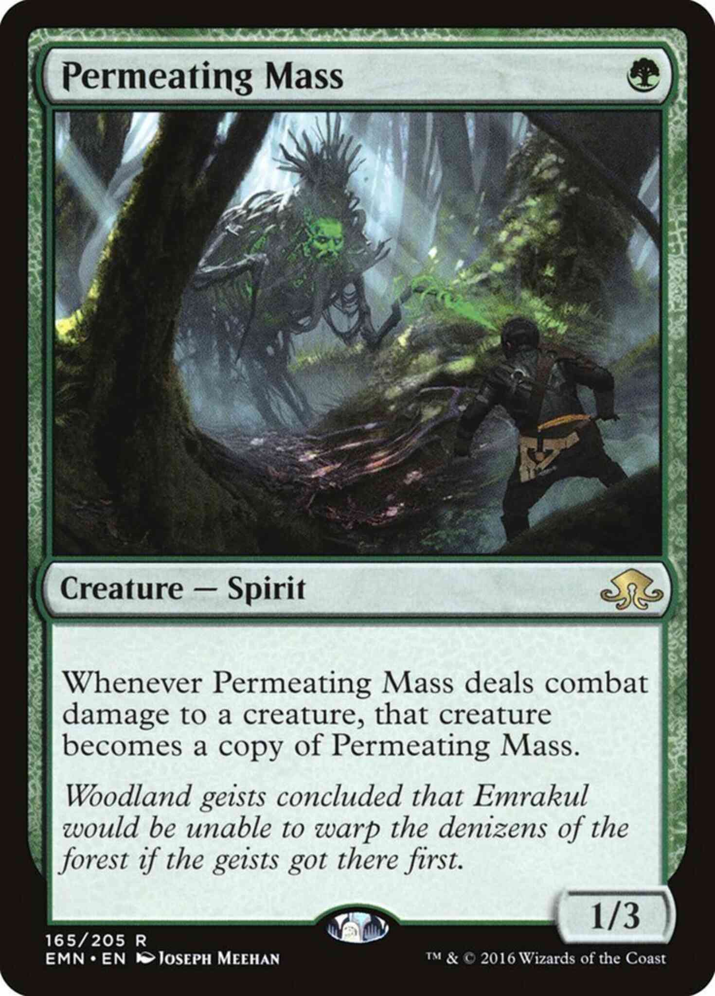 Whenever Permeating Mass deals combat damage to a creature, that creature becomes a copy of Permeating Mass.