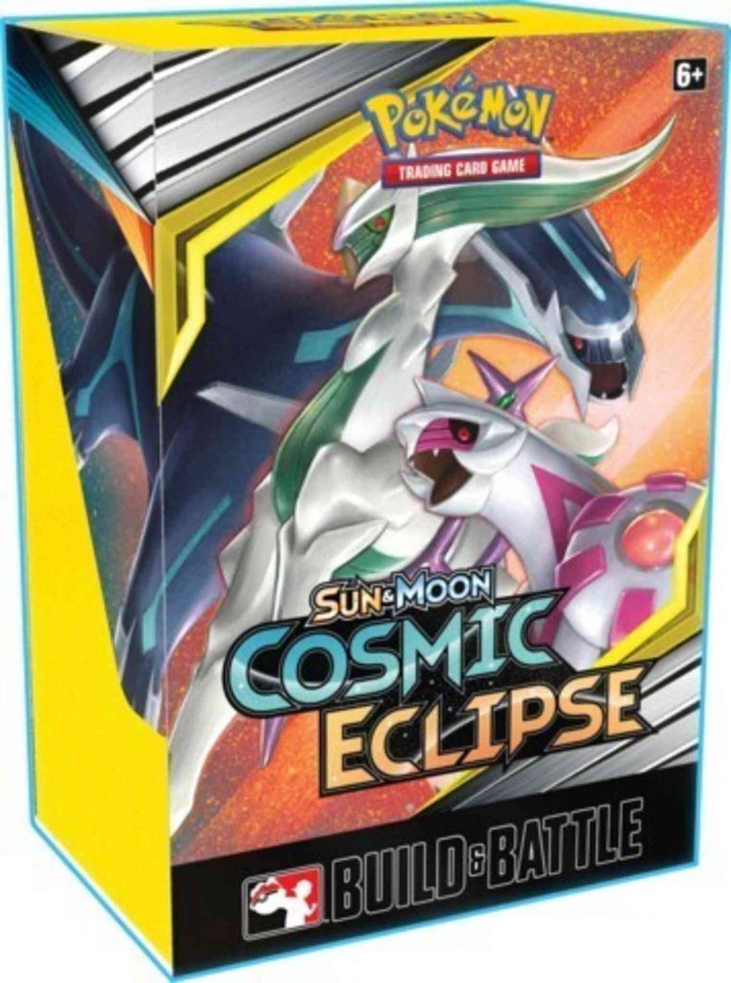 This Build & Battle Box includes a 23-card Evolution pack (which contains 1 of 4 exclusive foil promo cards) and 4 booster packs from Sun & Moon—Cosmic Eclipse. You'll use these cards, along with basic Energy (not included), to build a 40-card deck.