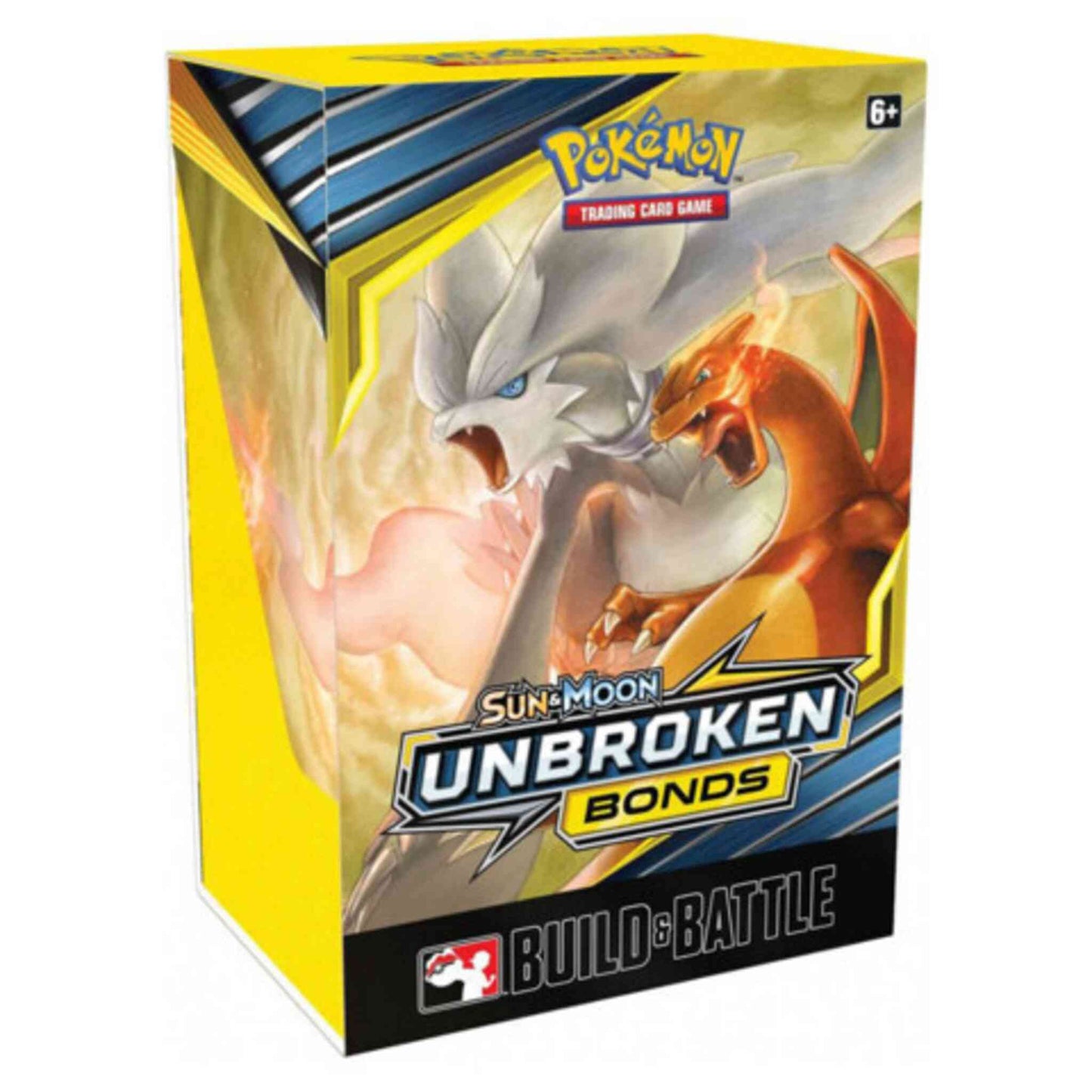 Description: This Build & Battle Box includes a 23-card Evolution pack (which contains 1 of 4 exclusive foil promo cards) and 4 booster packs from Sun & Moon—Unbroken Bonds. You'll use these cards, along with basic Energy (not included), to build a 40-card deck.