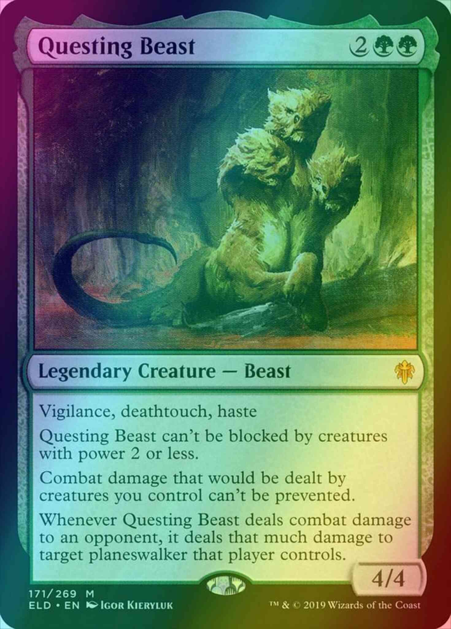 Whenever Questing Beast deals combat damage to an opponent, it deals that much damage to target planeswalker that player controls.