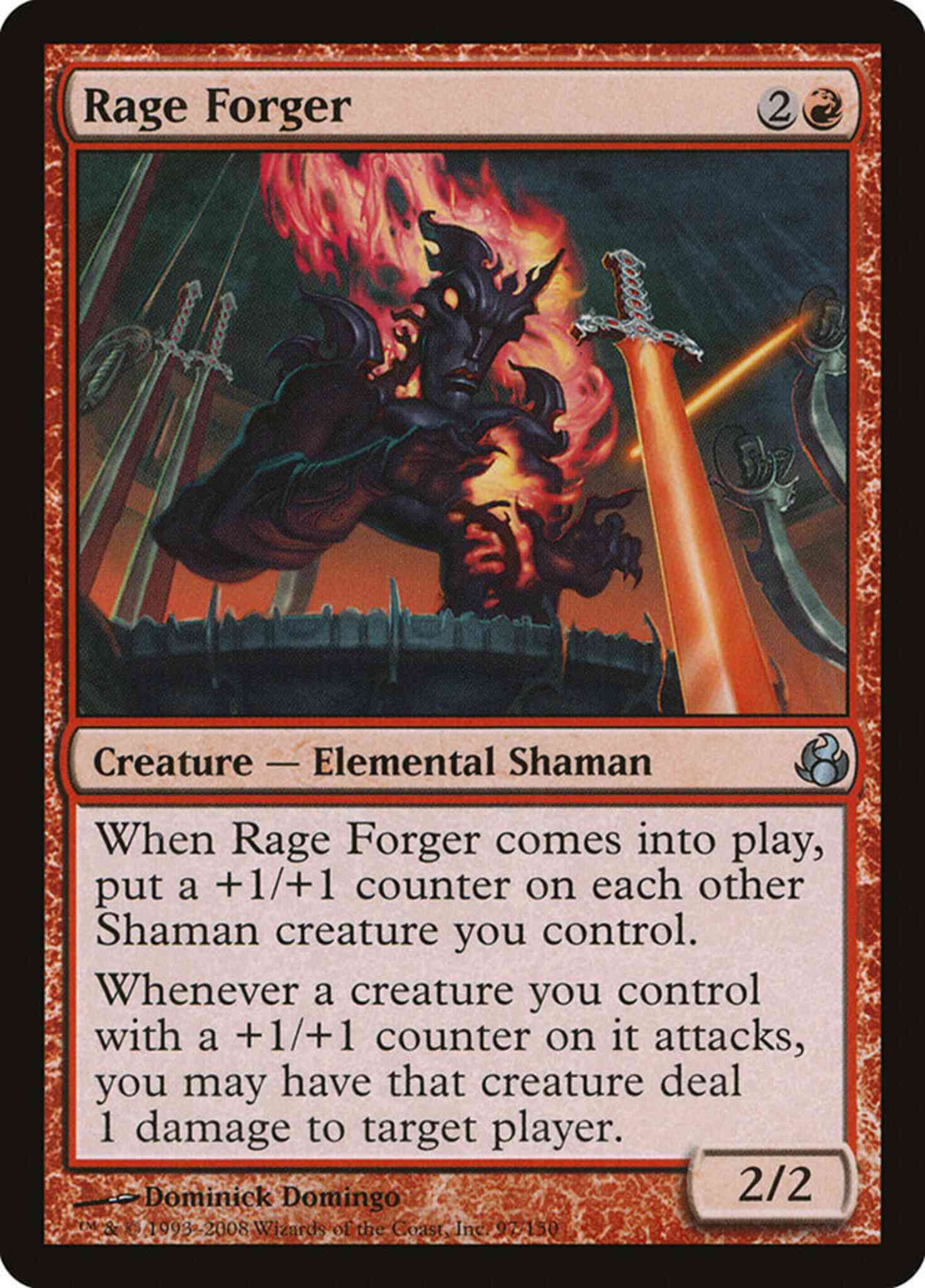 When Rage Forger enters the battlefield, put a +1/+1 counter on each other Shaman creature you control.