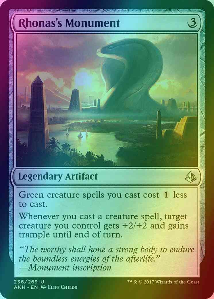 Card Text: Green creature spells you cast cost {1} less to cast. Whenever you cast a creature spell, target creature you control gets +2/+2 and gains trample until end of turn.