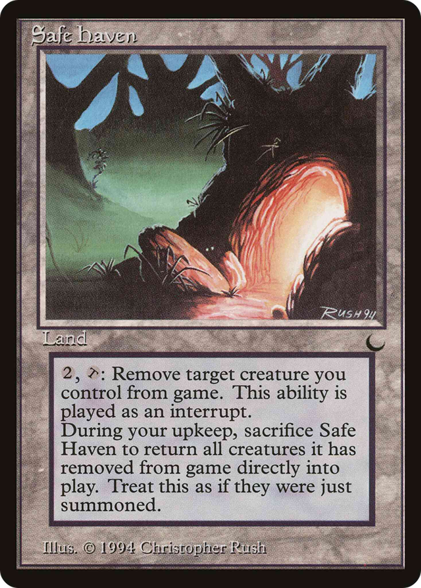 At the beginning of your upkeep, you may sacrifice Safe Haven. If you do, return each card exiled with Safe Haven to the battlefield under its owner's control.