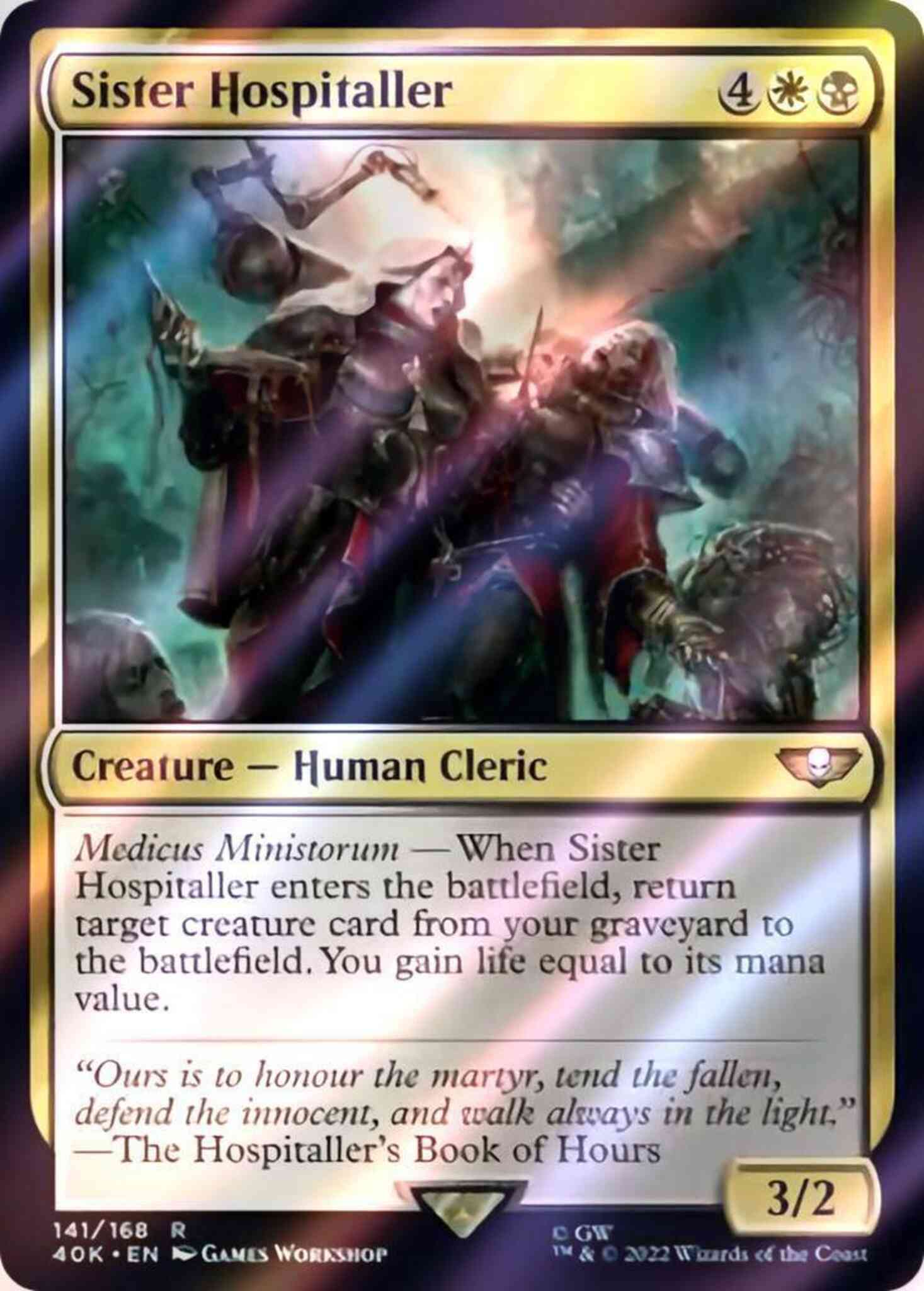 Medicus Ministorum — When Sister Hospitaller enters the battlefield, return target creature card from your graveyard to the battlefield. You gain life equal to its mana value.