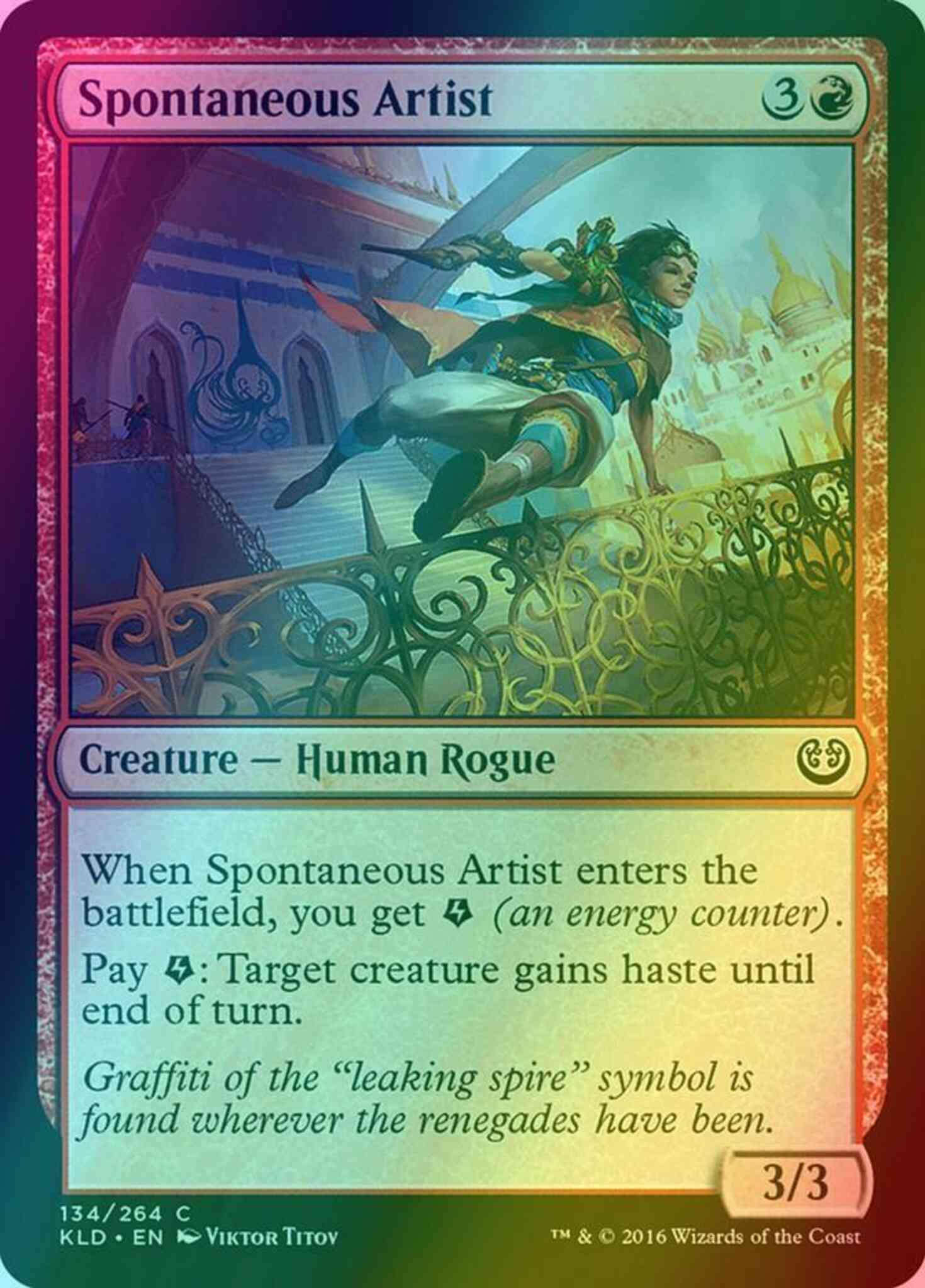 When Spontaneous Artist enters the battlefield, you get {E} (an energy counter).