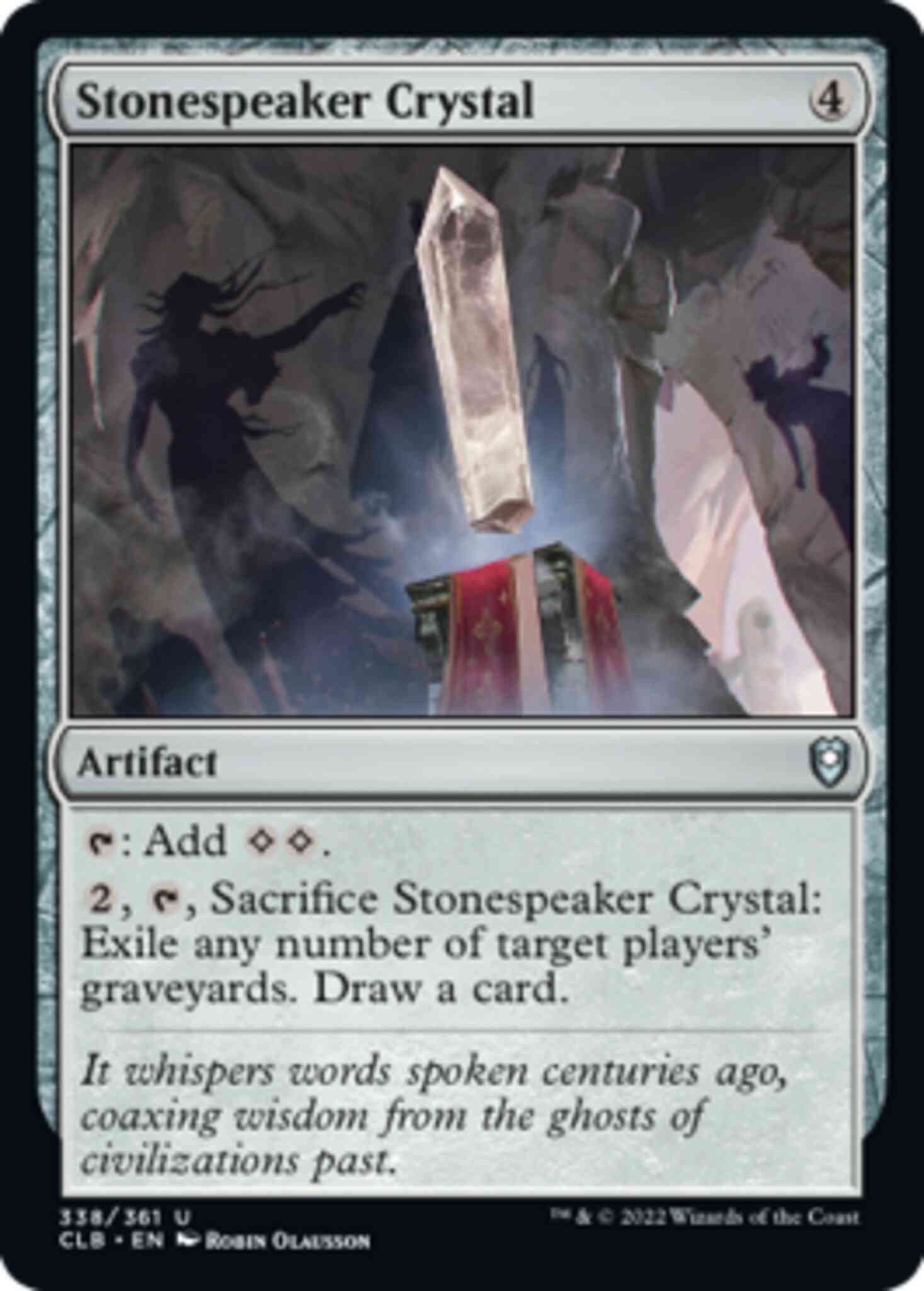 {2}, {T}, Sacrifice Stonespeaker Crystal: Exile any number of target players' graveyards. Draw a card.