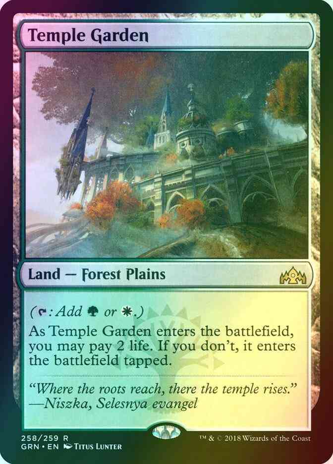 As Temple Garden enters the battlefield, you may pay 2 life. If you don't, it enters the battlefield tapped.