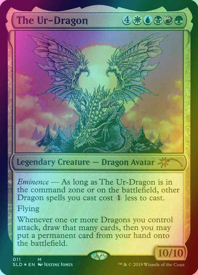 Eminence — As long as The Ur-Dragon is in the command zone or on the battlefield, other Dragon spells you cast cost {1} less to cast.