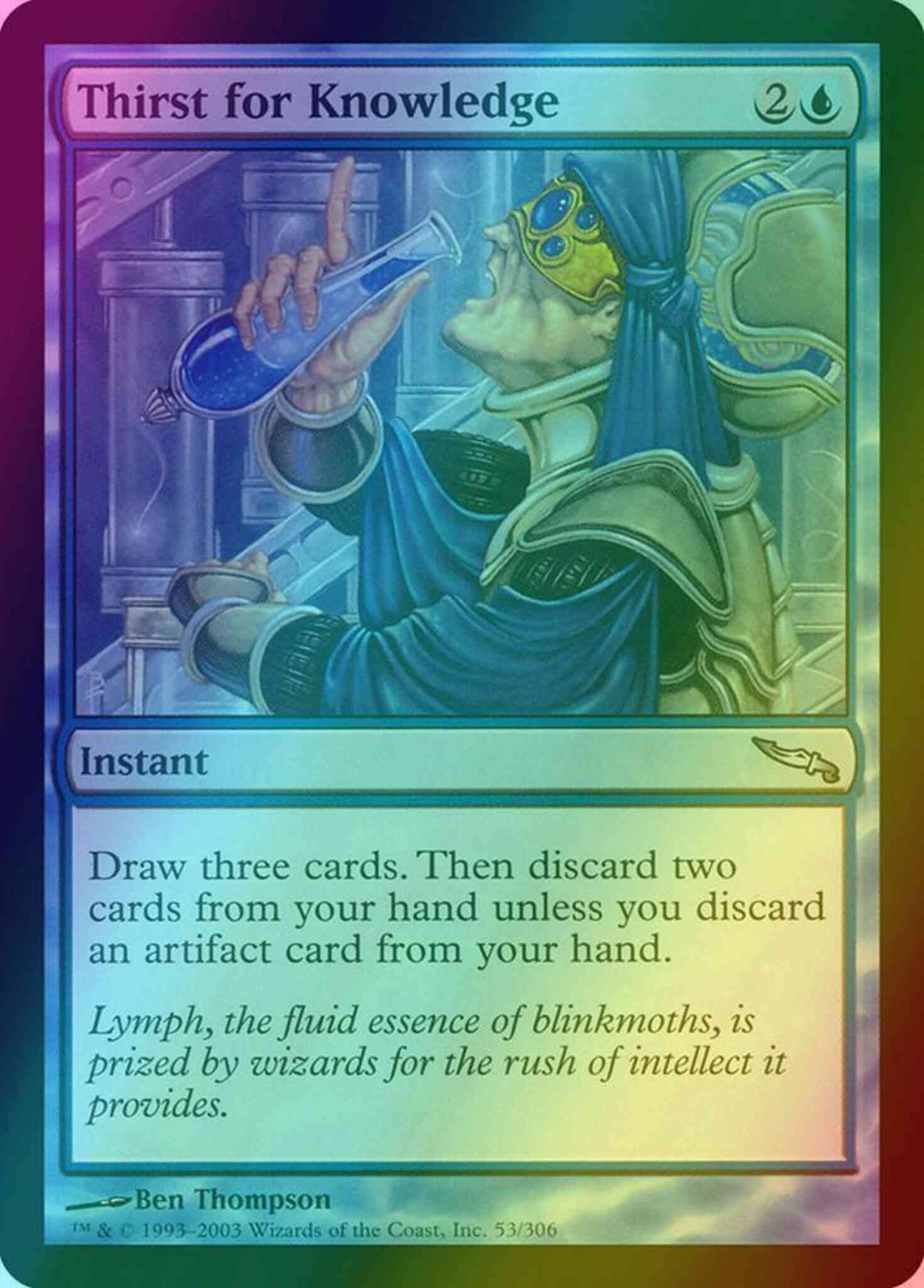 Card Text: Draw three cards. Then discard two cards unless you discard an artifact card.