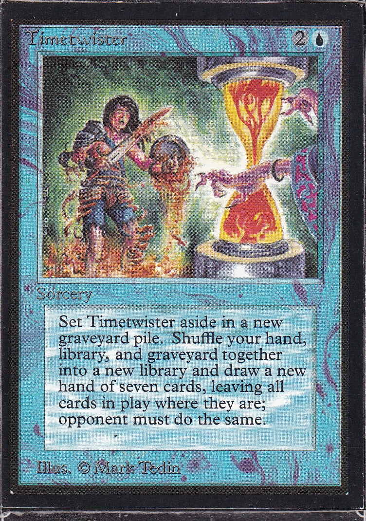 Each player shuffles their hand and graveyard into their library, then draws seven cards. (Then put Timetwister into its owner's graveyard.)