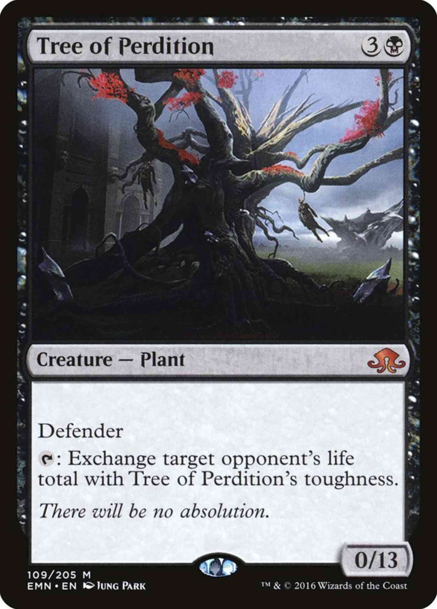 {T}: Exchange target opponent's life total with Tree of Perdition's toughness.