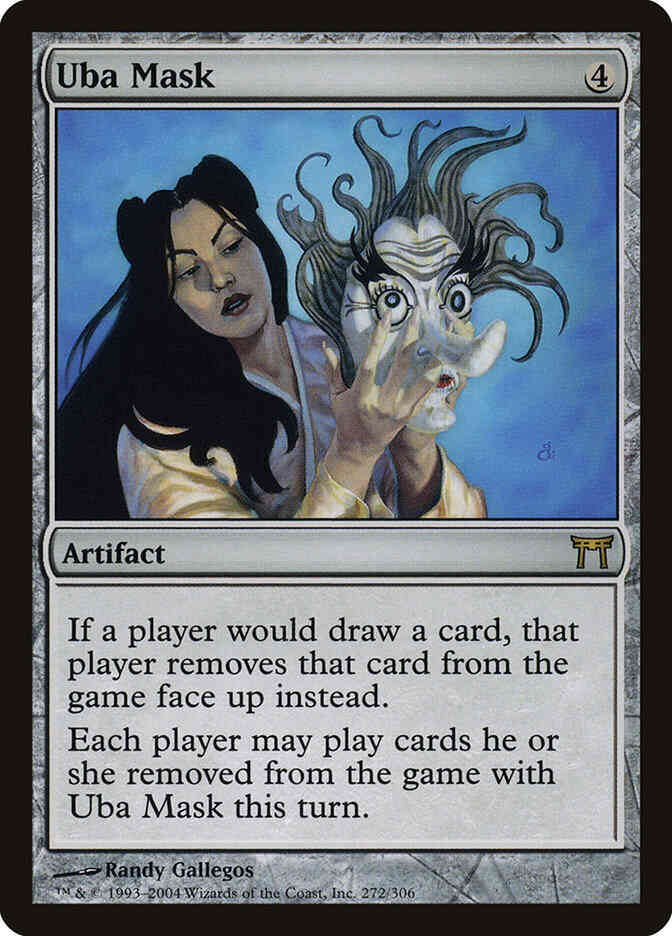 Card Text: If a player would draw a card, that player exiles that card face up instead. Each player may play cards they exiled with Uba Mask this turn.
