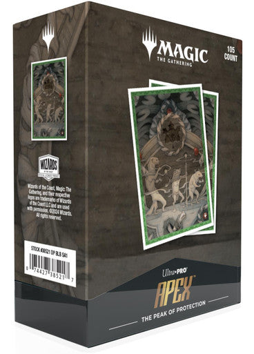These 105ct APEX Deck Protector sleeves for Magic: The Gathering feature full-color artwork . Archival-safe polypropylene materials ensure you can sleeve your cards with confidence. Sized for standard size trading cards measuring 2.5 in. x 3.5 in. APEX sleeves feature a textured back for an easy-shuffle experience. The gloss clear front lets your foil cards shine!