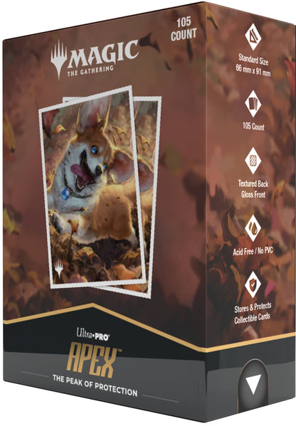 These 105ct APEX Deck Protector sleeves for Magic: The Gathering feature full-color artwork . Archival-safe polypropylene materials ensure you can sleeve your cards with confidence. Sized for standard size trading cards measuring 2.5 in. x 3.5 in. APEX sleeves feature a textured back for an easy-shuffle experience. The gloss clear front lets your foil cards shine!