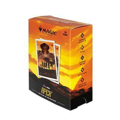 These 105ct APEX Deck Protector sleeves for Magic: The Gathering feature full-color artwork . Archival-safe polypropylene materials ensure you can sleeve your cards with confidence. Sized for standard size trading cards measuring 2.5 in. x 3.5 in. APEX sleeves feature a textured back for an easy-shuffle experience. The gloss clear front lets your foil cards shine!