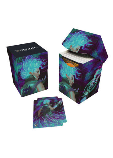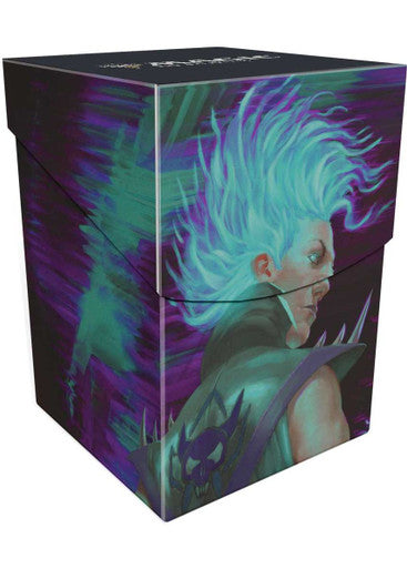 The 100+ Deck Box features vibrant, full-color artwork from Magic: The Gathering and includes a matching deck divider. Made with archival-safe, non-PVC, rigid polypropylene materials, you can store up to 100 double-sleeved cards with confidence. The self-locking lid keeps your cards securely stored when not in use, while also offering easy access. Sized for standard size trading cards.