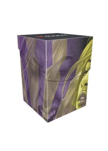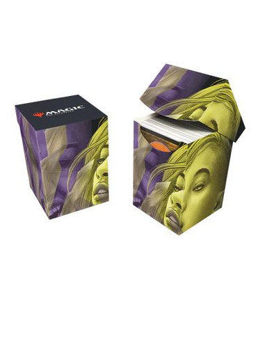The 100+ Deck Box features vibrant, full-color artwork from Magic: The Gathering and includes a matching deck divider. Made with archival-safe, non-PVC, rigid polypropylene materials, you can store up to 100 double-sleeved cards with confidence. The self-locking lid keeps your cards securely stored when not in use, while also offering easy access. Sized for standard size trading cards.