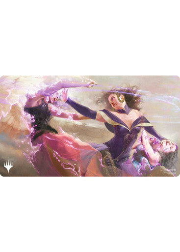 Playmats feature exclusive crops of popular Magic: The Gathering artwork. Made with a soft fabric top to reduce damage to cards during play and a non-slip rubber backing to keep the playmat from shifting during use, playmats enhance the gameplay experience. With dimensions of approximately 24 in. x 13.5 in., a playmat also makes an excellent oversize mousepad for home or office.