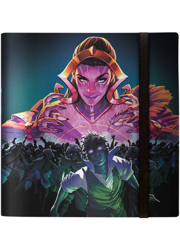 The PRO-Binder for Magic: The Gathering features a vibrant, full-art cover and hot pink webbed pages with matching elastic strap closure. Side-loading pockets and low-friction material help keep cards in place. Up to 480 cards can be stored safely in archival-safe, acid-free, non-PVC pages.