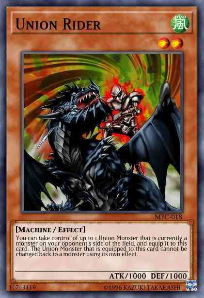 You can take control of up to 1 Union Monster that is currently a monster on your opponent's side of the field, and equip it to this card. The Union Monster that is equipped to this card cannot be changed back to a monster using its own effect.