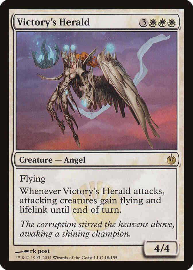 Card Text: Flying Whenever Victory's Herald attacks, attacking creatures gain flying and lifelink until end of turn.