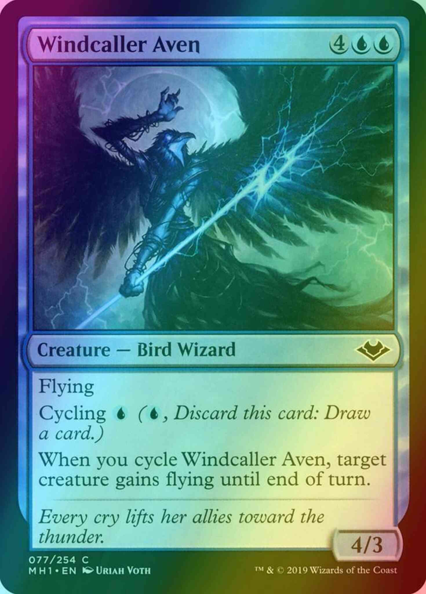 When you cycle Windcaller Aven, target creature gains flying until end of turn.