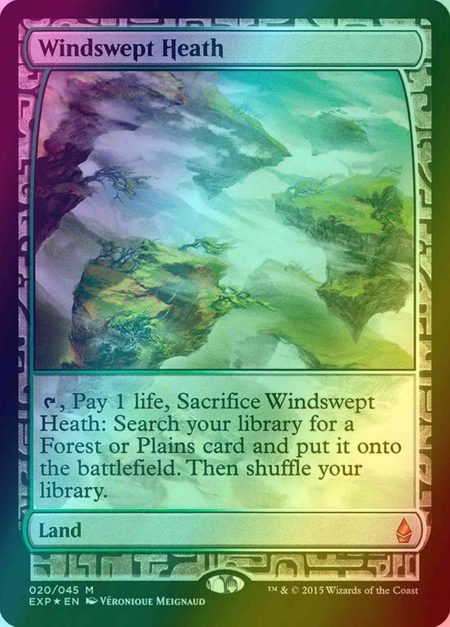 {T}, Pay 1 life, Sacrifice Windswept Heath: Search your library for a Forest or Plains card, put it onto the battlefield, then shuffle your library.
