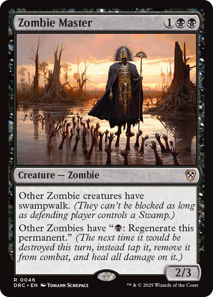 Other Zombie creatures have swampwalk. (They can't be blocked as long as defending player controls a Swamp.) Other Zombies have "{B}: Regenerate this permanent."